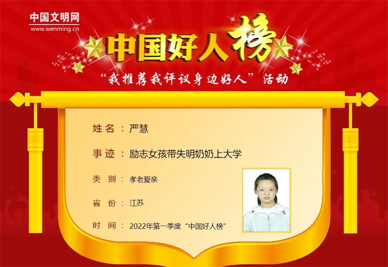 严慧荣登“中国好人榜”