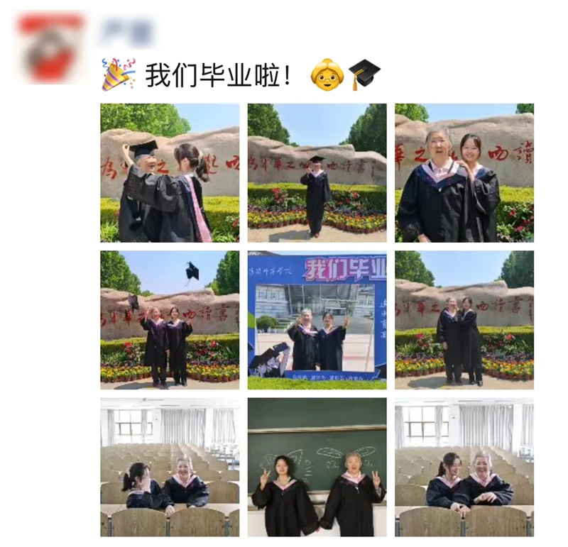 严慧晒出了和奶奶一起拍的毕业照