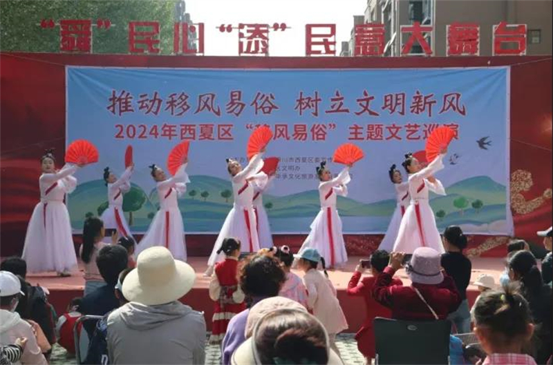 出新出彩开展文艺宣传。积极组织广大文艺工作者开展主题文艺创作,眉户剧《墙界》、小品《彩礼》等一批原创作品,受到广大群众一致好评。各新时代文明实践中心(所、站)以群众喜闻乐见的方式,将移风易俗等内容融入农民运动会、社火表演、全民阅读、广场舞等活动。金凤区连续6年举办集体婚礼,以反映时代精神为主题,引导树立正确的爱情观、婚姻观、家庭观。