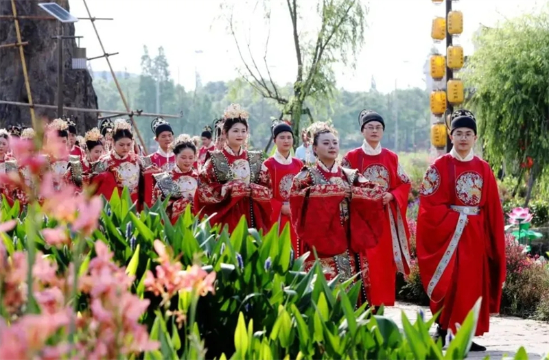 吉安市吉州区在钓源古村十里芳菲举办中式集体婚礼。活动中,18对新人们身着盛装礼服,手牵红绸踏上爱的红毯,缓缓步入婚礼舞台,依次进行白首成约、阙扇礼、合卺礼、撒帐礼等一系列互动活动。整场集体婚礼没有震耳鞭炮,没有奢华酒席,没有豪华婚车,流程简单,却仪式感满满,现场氛围热闹。