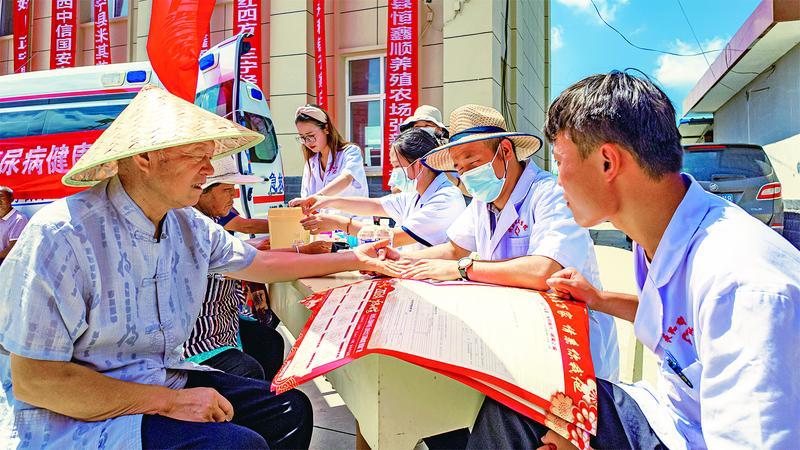 正宁县永和镇新时代文明实践站联合永和镇卫生院,组织医护志愿者开展“健康义诊进乡村,便民服务暖民心”送健康系列活动。