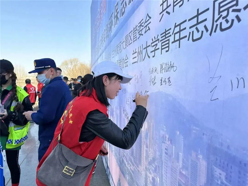 3月9日在兰州市“保护母亲河·共建绿水青山”活动中签名。甘肃省文明办提供