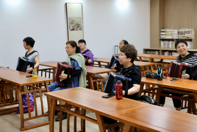 近日,“文明中国”主题采访报道组走进浙江省杭州市拱墅区大关街道新时代文明实践所,看到了陈阿姨和伙伴们正在演练手风琴。