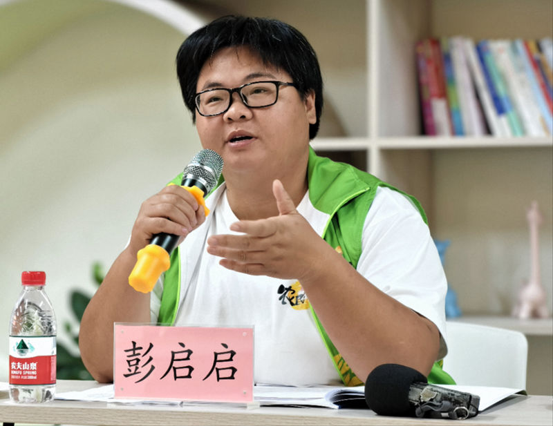 10月11日,慈溪市“农民演说家”、种粮大户彭启启正在介绍自己的经历。 新华网记者 钟奕摄