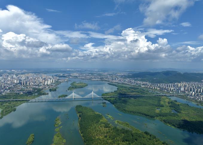 襄阳市汉江国家湿地公园绿意盎然,美不胜收。襄阳市文明办供图
