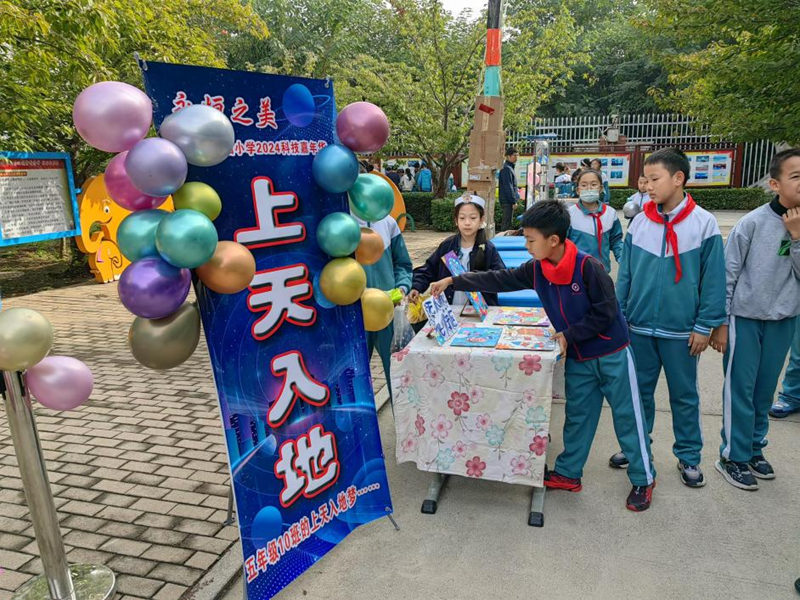 淄博市张店区祥瑞园小学的学生们在科技嘉年华展示自己的作品。新华网发(大众日报记者 董方舟摄)