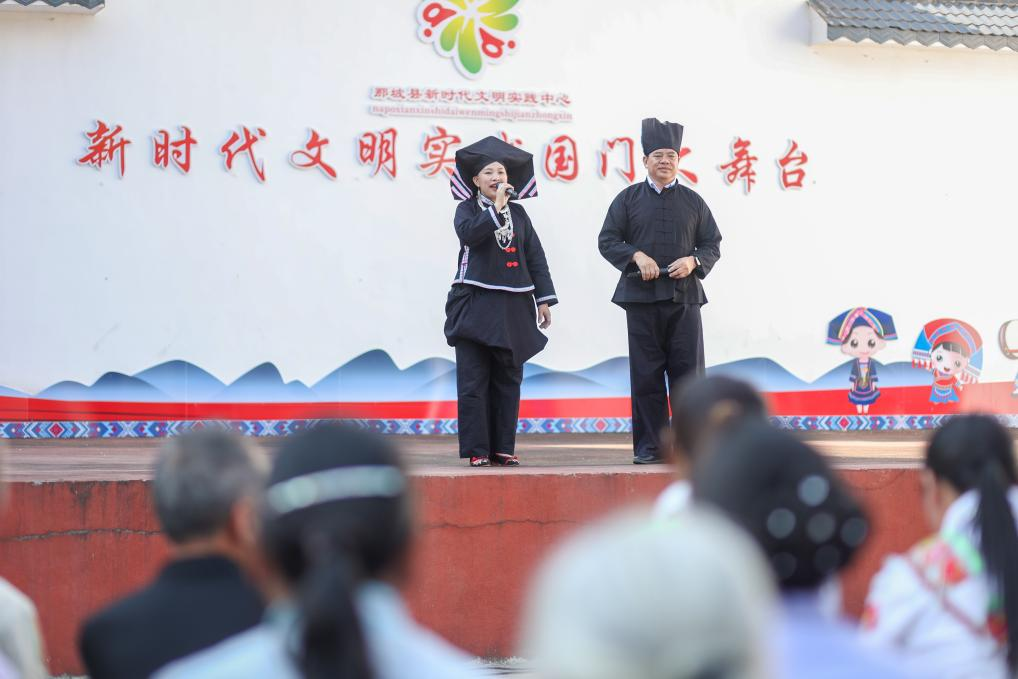 “铺张浪费不可干,大手大脚不合算,移风易俗风尚好,大操大办不要搞……”日前,在广西那坡县百省乡百坎村“国门舞台”,一场群众性演出吸引了各族群众的参与,当地百姓用一首方言编成的快板曲目向村民们传递着移风易俗的理念,引发了大家的共鸣。