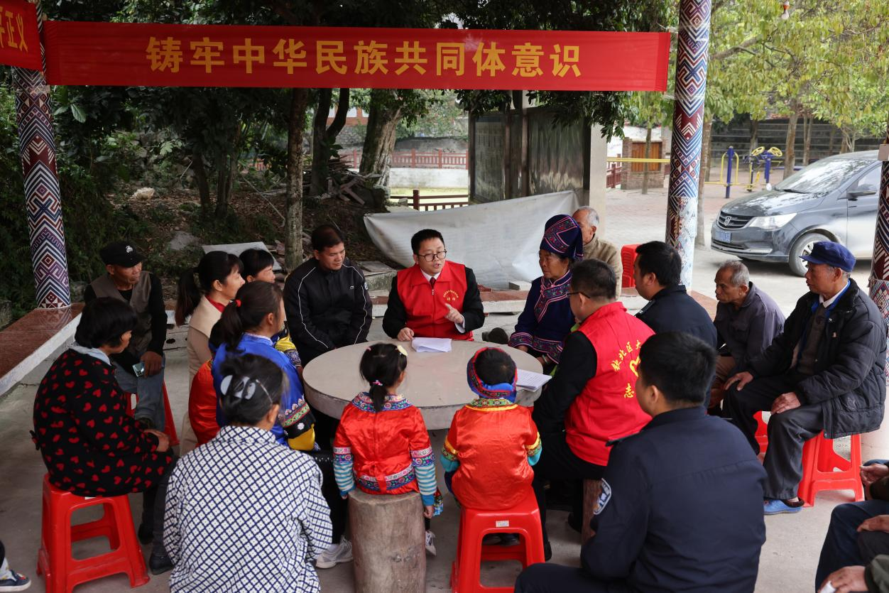 李钦城积极摒弃传统的“灌输式”普法模式,依托大寺法庭新时代文明实践站,精心组建了“石榴籽”普法志愿服务队和“钦心守护”志愿服务队等多支志愿力量。他巧妙利用“三月三”等民族传统节日和辖区各镇的集市日,积极开展“民族团结下乡”“民族团结进社区”“民族团结进景区”等普法活动,共计举办了160余次。在这些活动中,他将习近平新时代中国特色社会主义思想、党的二十大精神与山歌、采茶、跳岭头等丰富的民族文化相融合,打造出别具一格的民族法治文化景观。“李钦城庭长在工作当中非常注重走进群众,把工作前沿延伸到村里面,延伸到田间地头,在村里面开庭、调解,通过这种方式起到审理一案、教育一片的效果。”钦北区法院大寺法庭副庭长张晓歌评价说。
